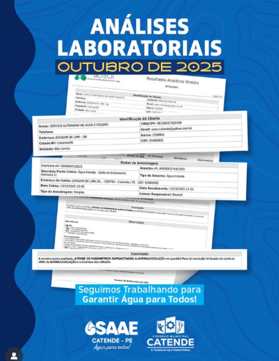 💧 SAAE é 10/10 nas análises da água! O SAAE mantém o compromisso com a qualidade e transparência! ✅ Nas análises...