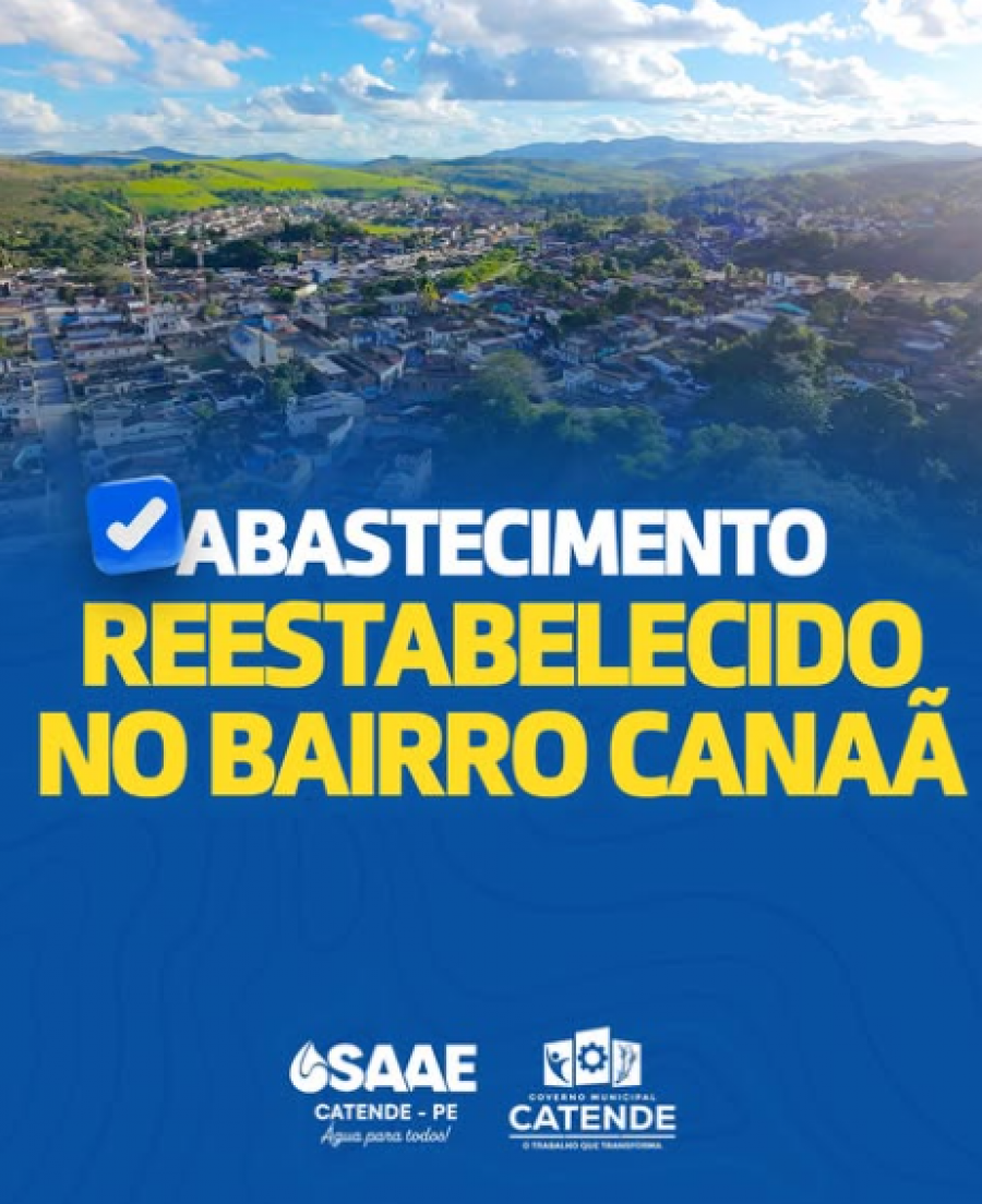 Abastecimento reestabelecido!O fornecimento de água no Canaã foi normalizado.Agradecemos a compreensão de todos durante o período...